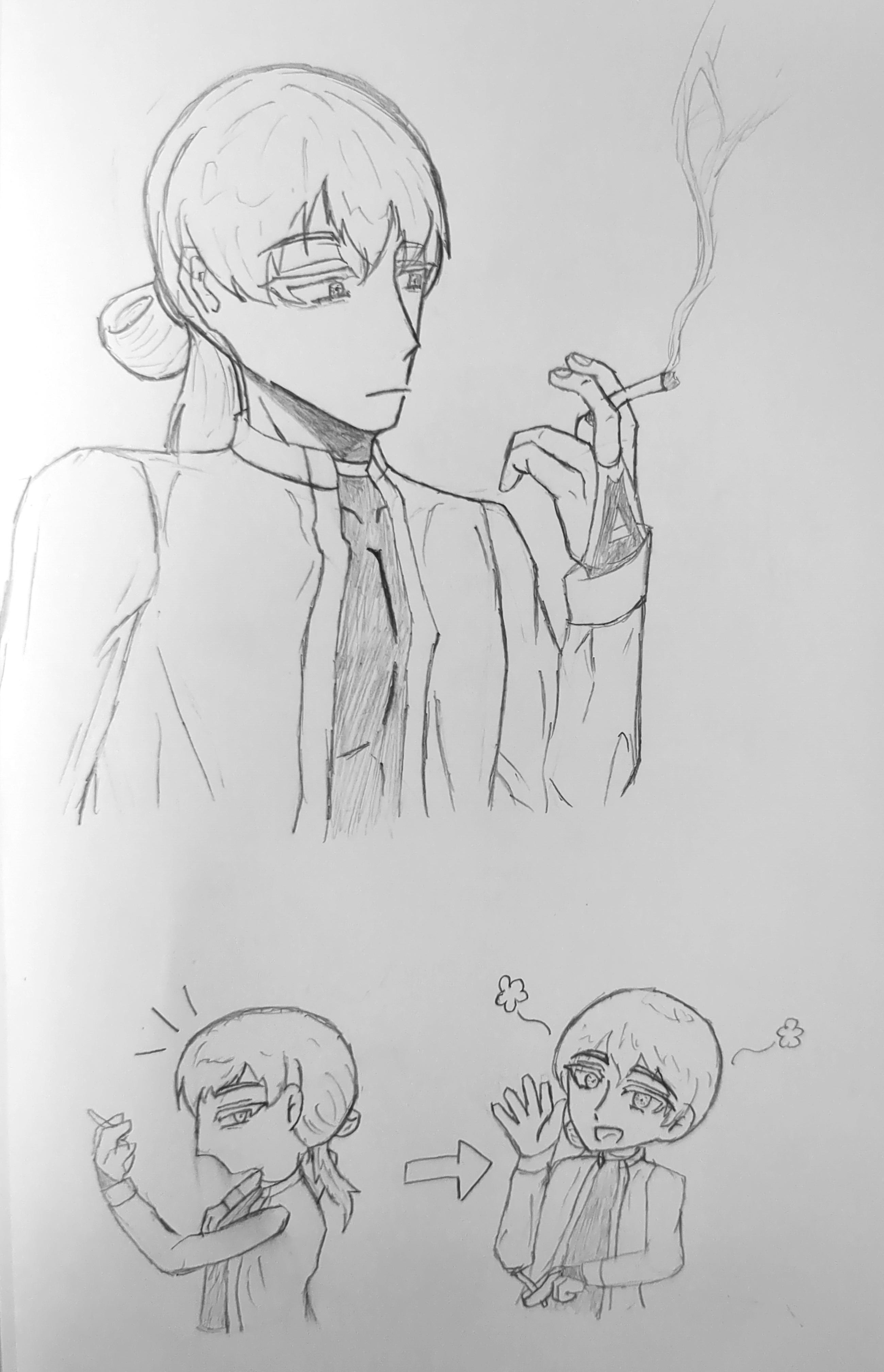 地味にタバコを持つ手をいろんな角度で普通の絵柄でもデフォルメでも描けてるのものすごいのでは?