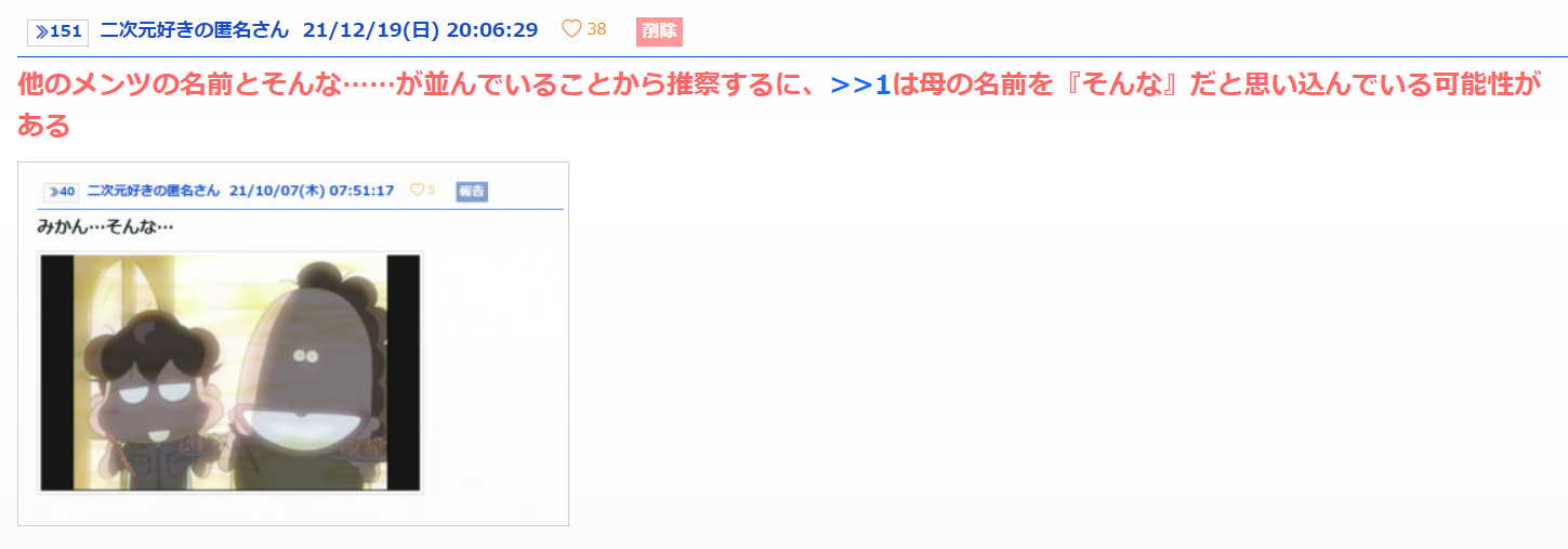 母の本名「そんな」だと思ってる説好き