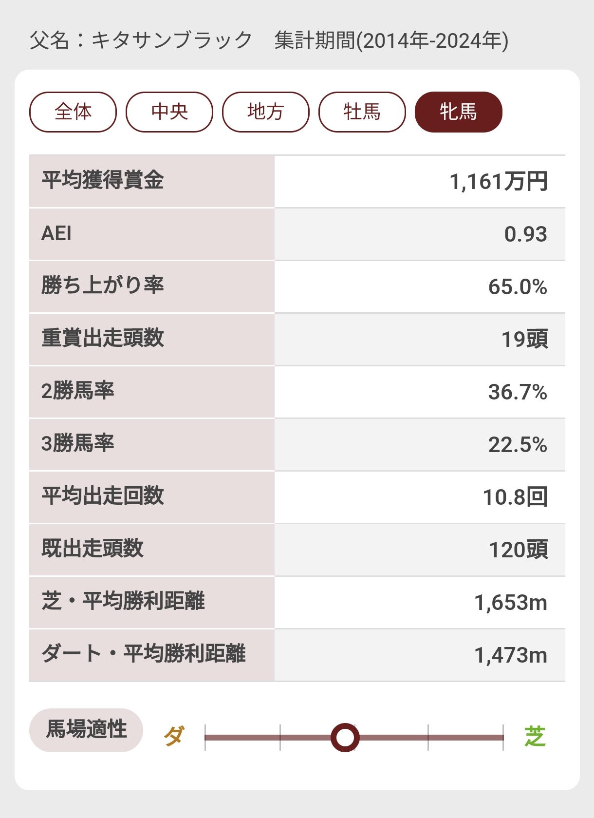 牝馬だとAEIが1割ってるのは結構びっくりだな