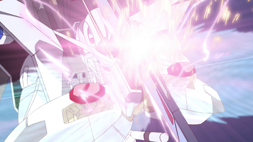 シンのジャスティスを高エネルギー長射程ビーム砲で葬ったマユとステラ