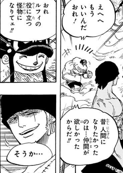 普段描写されてない所でルフィとゾロが大はしゃぎでバカやってんだろうなあと思うと胸熱だわ