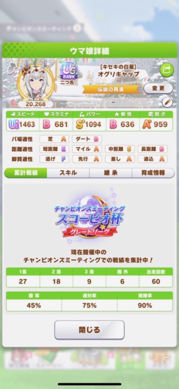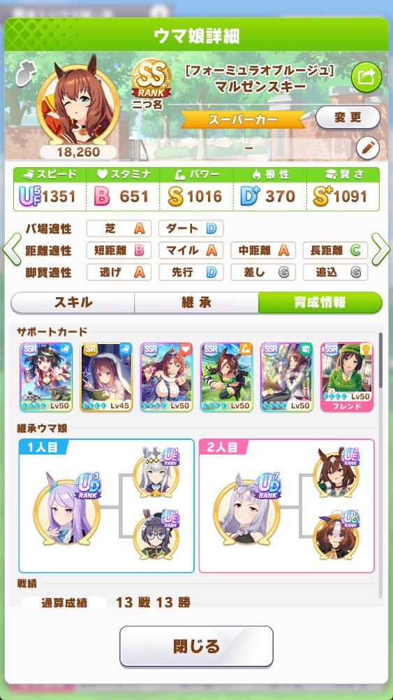 レースボーナスが高いサポカが強くなり、そのせいかSR根性アヤベさんが最強格へとなっていたよ。