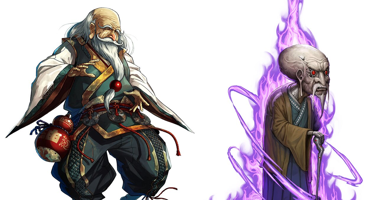 右のジジイは、利益のために主人公の忍軍を裏切って逃亡し、重傷を負うが少女の肉体に脳を移してバ美肉して、その肉体が気に入ってしまって自分の娘の職場に「はーいママよ♡」とか言って押しかけたり、昔から自分は美少女だったという妄想に囚われたりする変態。でも強敵