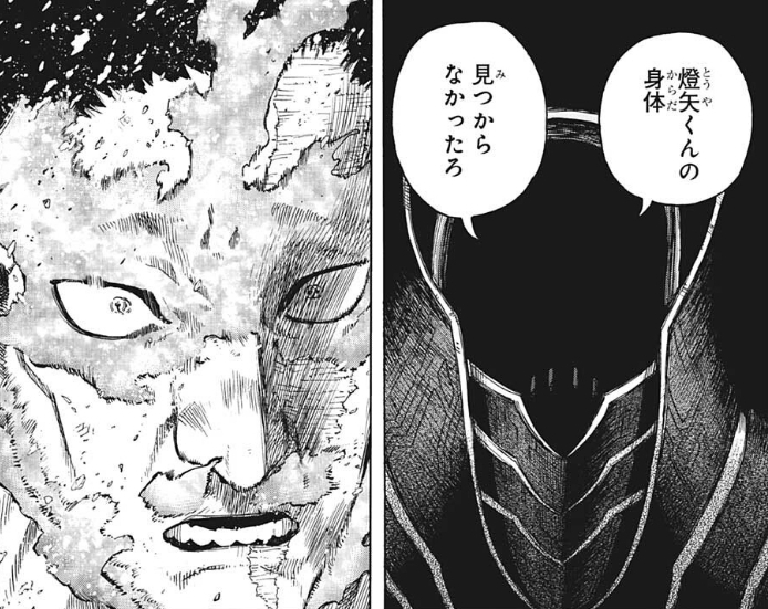 墓に入ってる燈矢の遺体が偽物で、荼毘が本物の燈矢って話だと思う