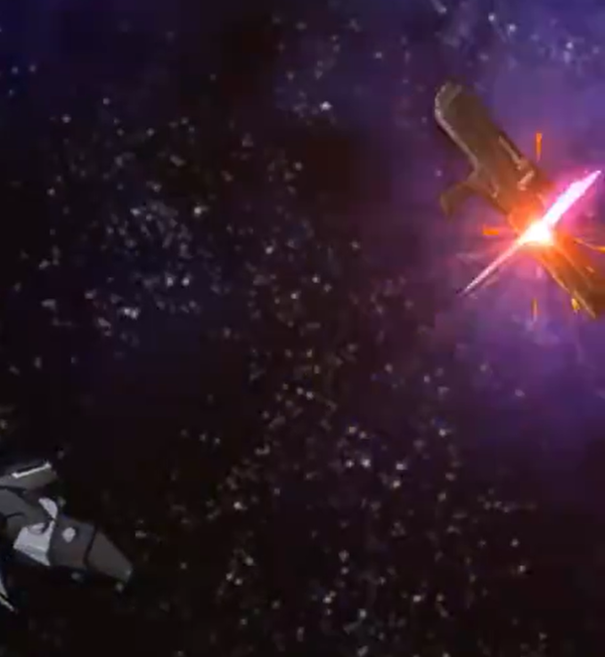 →「密集してはならん、レクイエムのいい的になる!」(ファウンデーション側の戦略を読むもレクイエムが早く、凪払われる艦隊司令)
