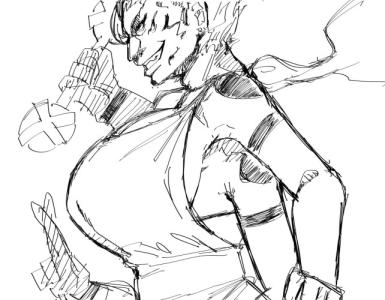 前かがみのイラストを書いたら手がゴムゴムになったんだァ