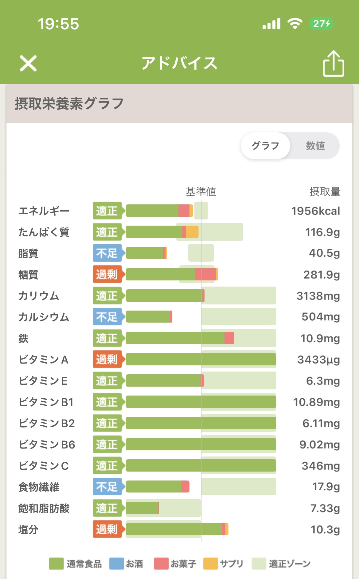 おーっカロリーが不足しとるやん