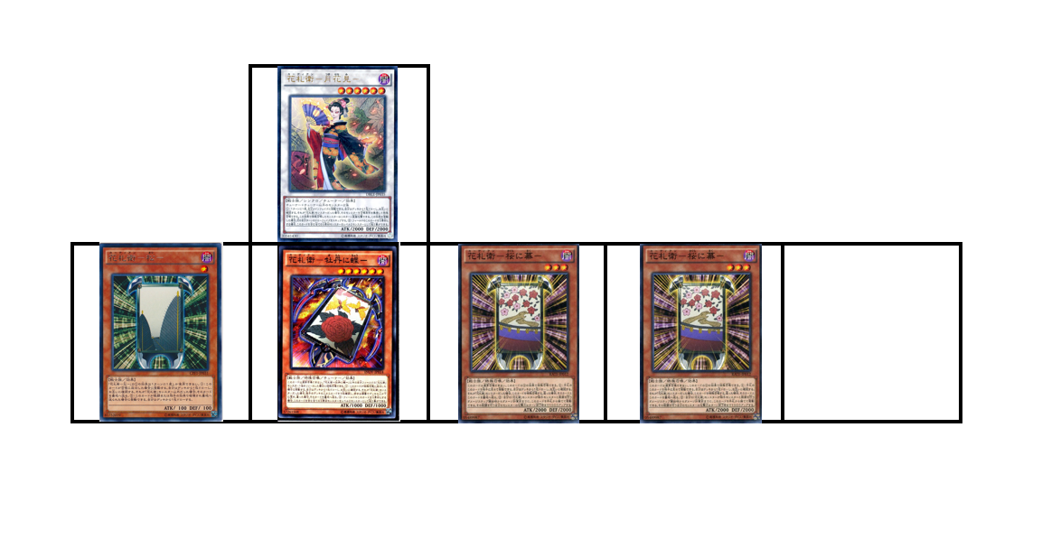 その為花札衛は初動の難易度が一番高く、展開を通せば通すほど効果が発動する確率が高くなります。《猪鹿蝶》を立てた後も動いていたり、チューナーを残した状態で《雨四光》を立てたりしていたら、相手のデッキには脂が乗り切っている証拠です。先行制圧の最高点は