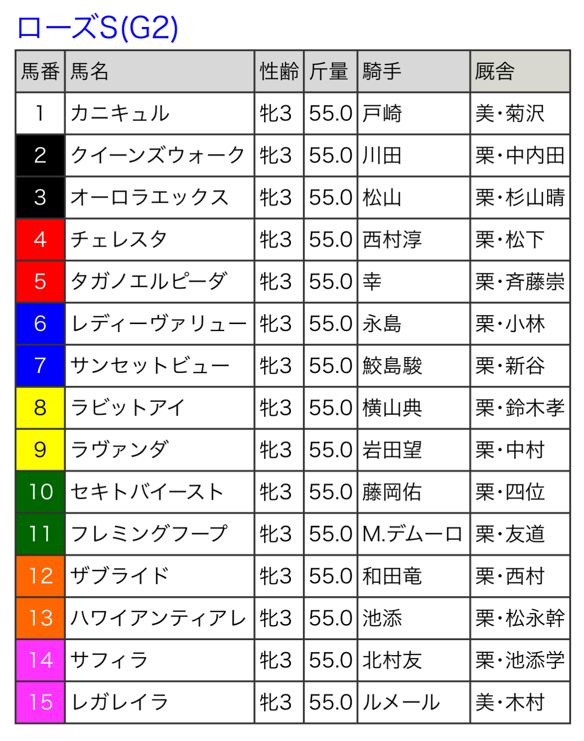 十中八九先行するし揉まれるのはオークスでやったんで好枠だと思う