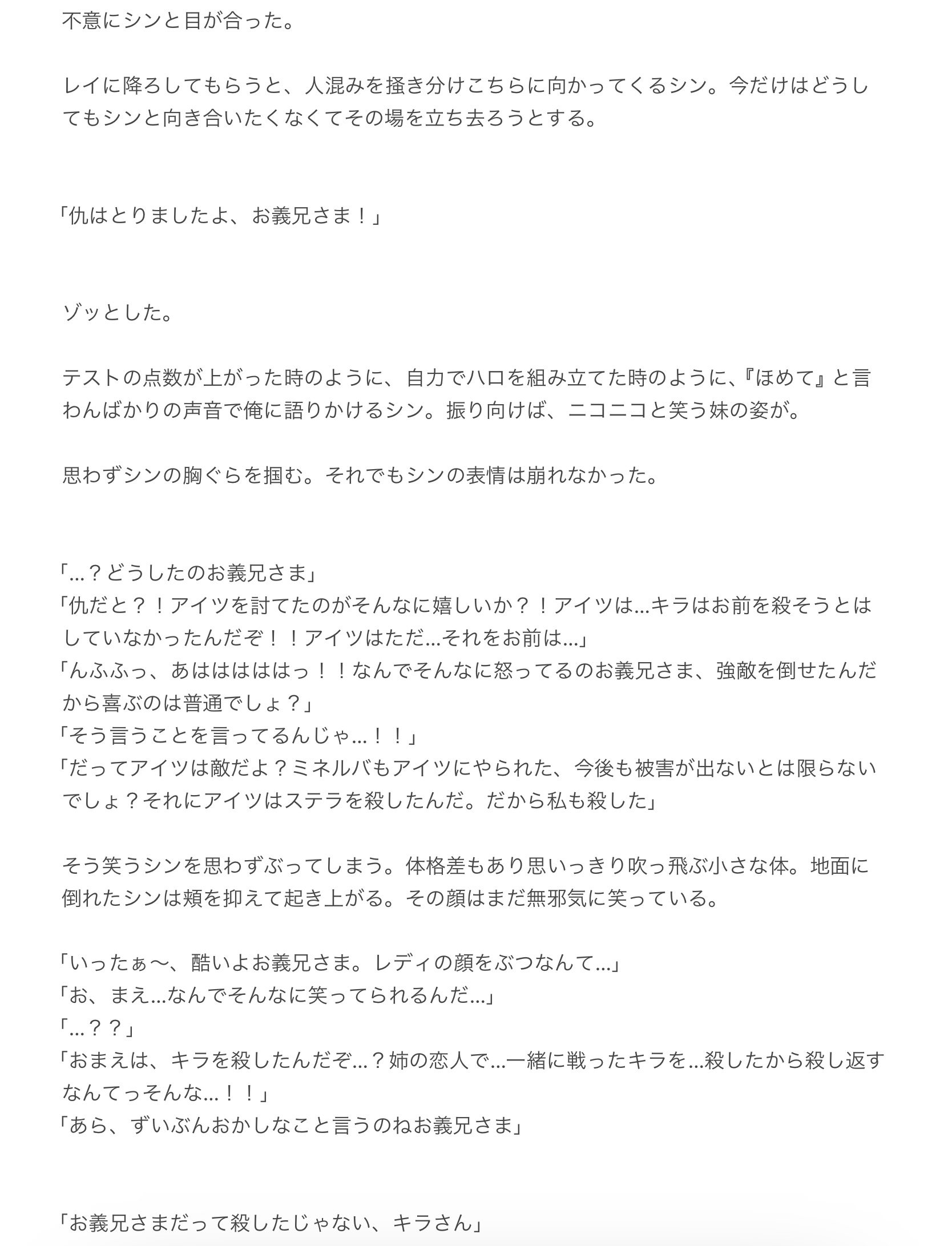 「大丈夫だラクス。君に言われなくても、シンは必ず···今度こそ、俺が助けてみせる」