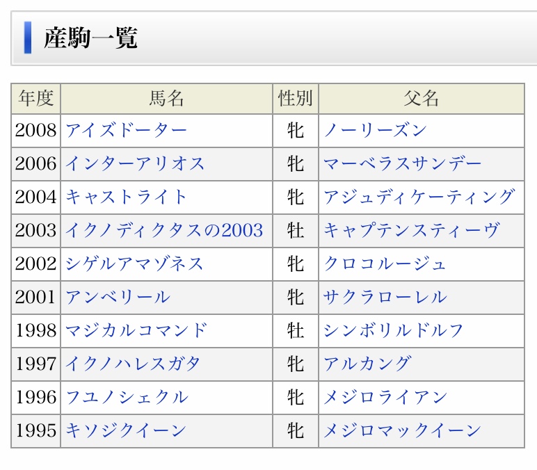 こんだけ色んな馬と交配してて当時流行りのサンデーは付けてないんか