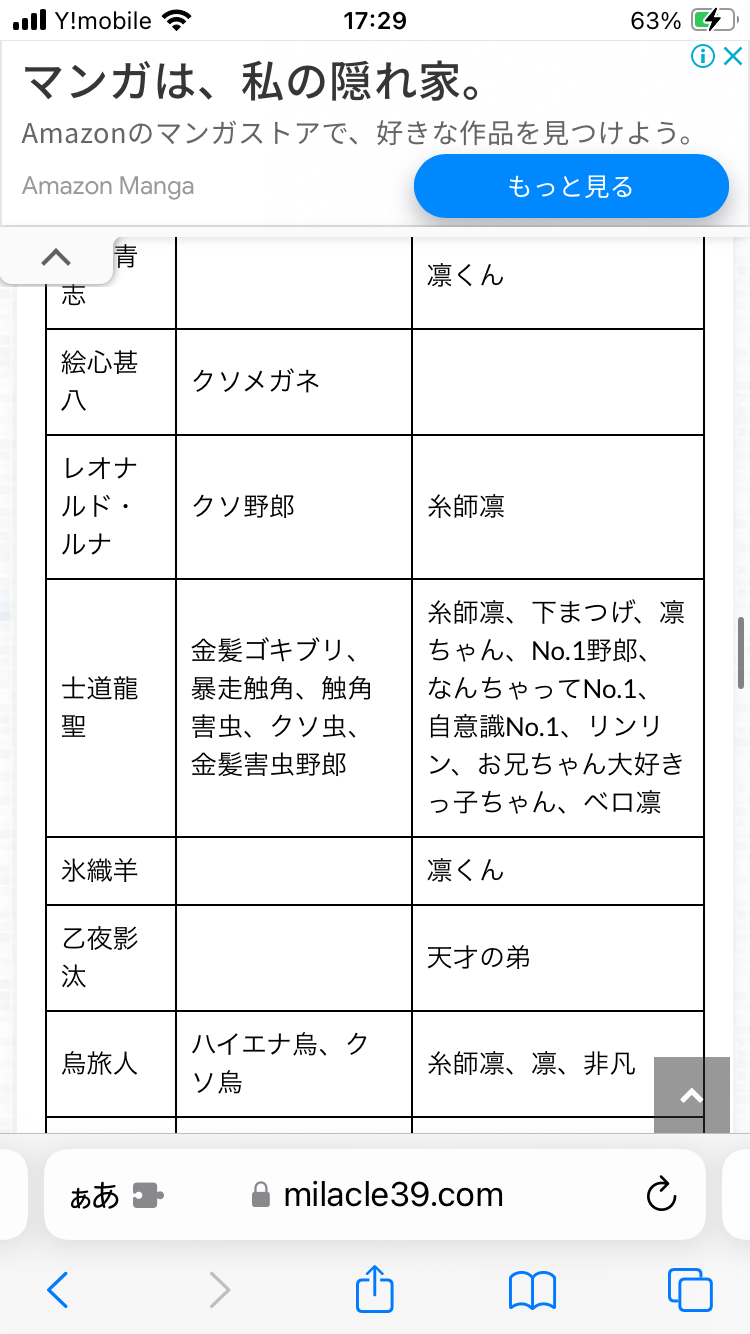 こう見ると凛ちゃん関連の渾名って下まつげが多いな