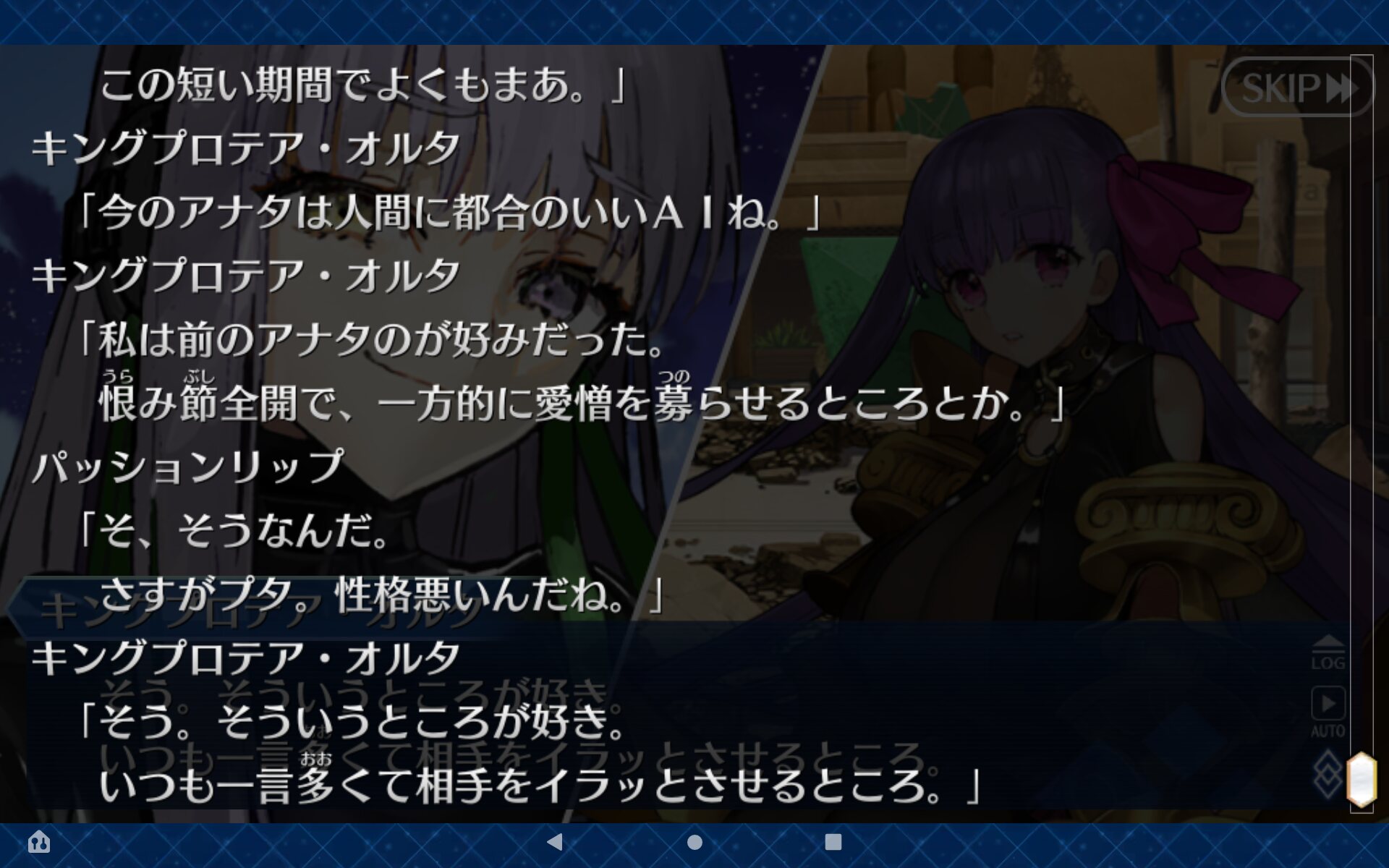 プロテアちゃんは渇愛のアルターエゴなのでオルタ化すると純粋に愛を求めるノーマルとは違ってわざと悪い子ぶって構って貰おうとする捻くれた子なんだ