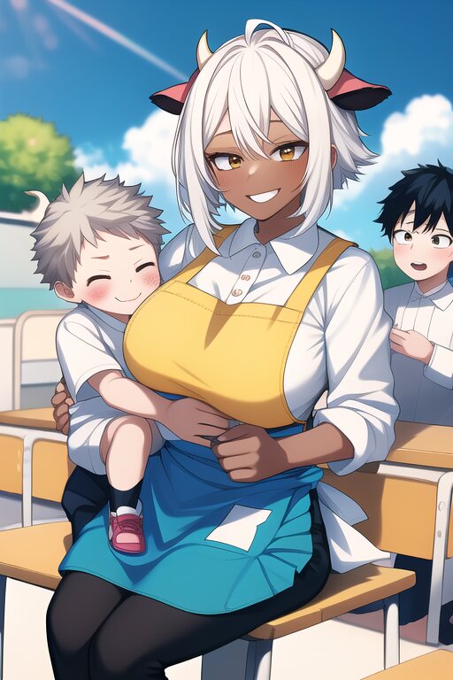 子供丑尾くん時代に授業参観に来る親御さんの中で異彩を放つデカムキ褐色肌の丑尾ママ
