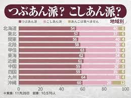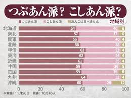 仮につぶあんとこしあんの美味しさが同じだった場合より手間の少ないつぶあんの方が普及しているはずだが、実際にはつぶあん派とこしあん派は拮抗している