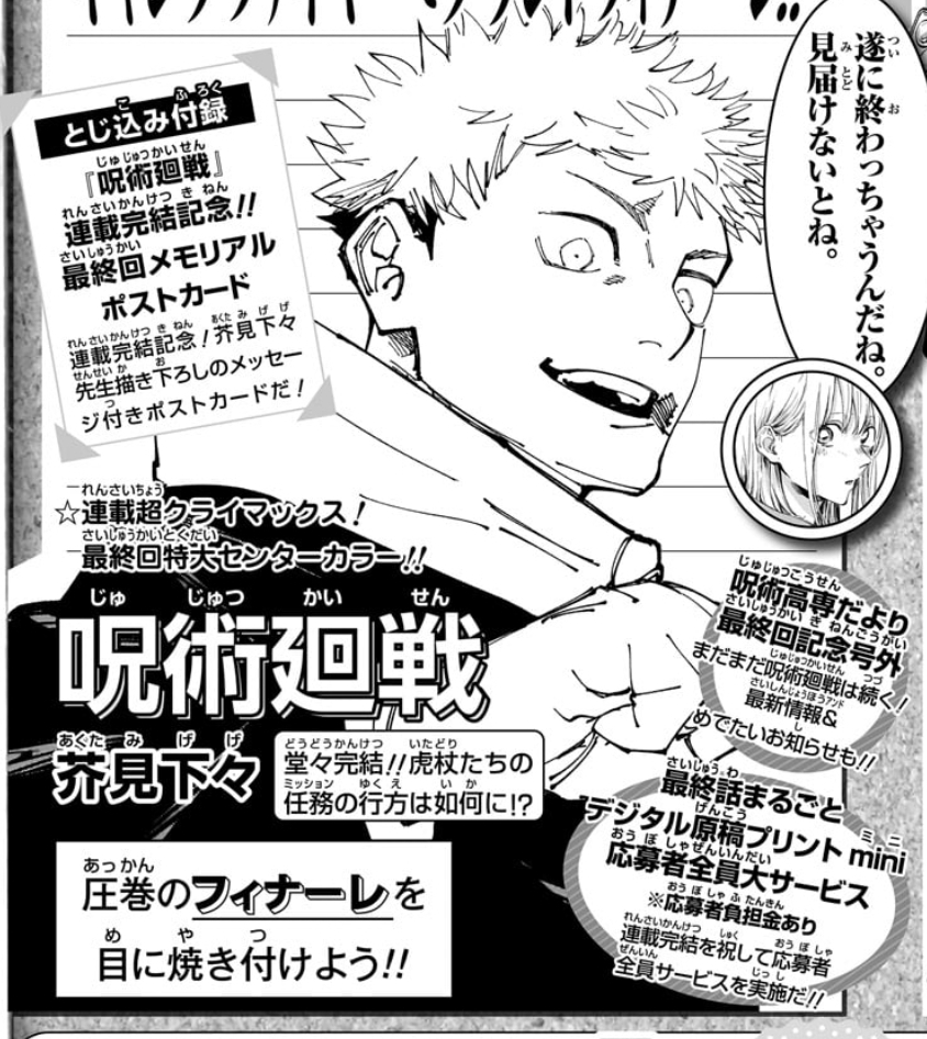 話のまとめやすさとか考えると渋谷事変までかな - 19二次元好きの匿名さん24/09/18(水) 07:59:16
