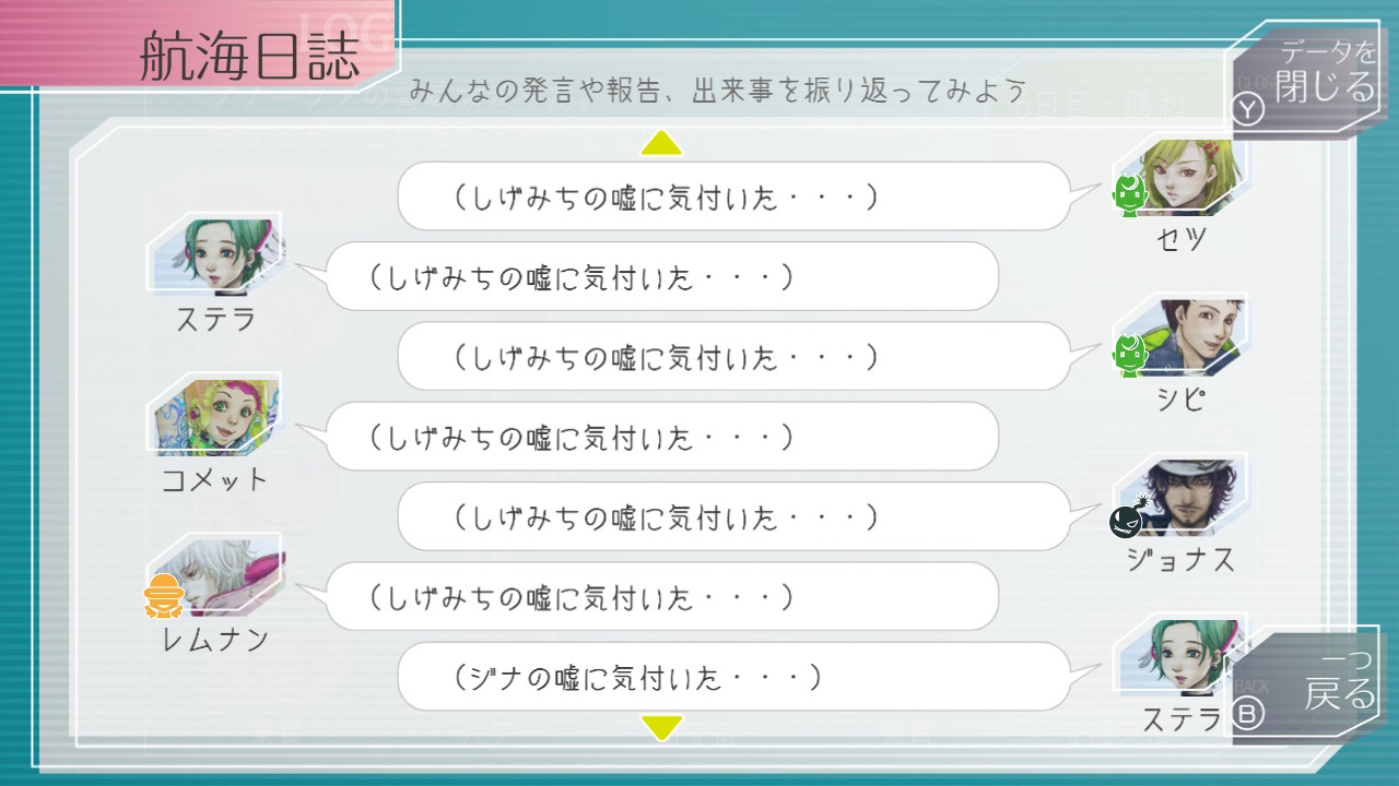 絶対に敵だ(絶対にバグだ、絶対にAC主義者だ、何かわからないけど敵だ、絶対にグノーシアだ)とかも差分あるし更に中には同じ条件でも好感度ごとでセリフ変わってたりするし面白い