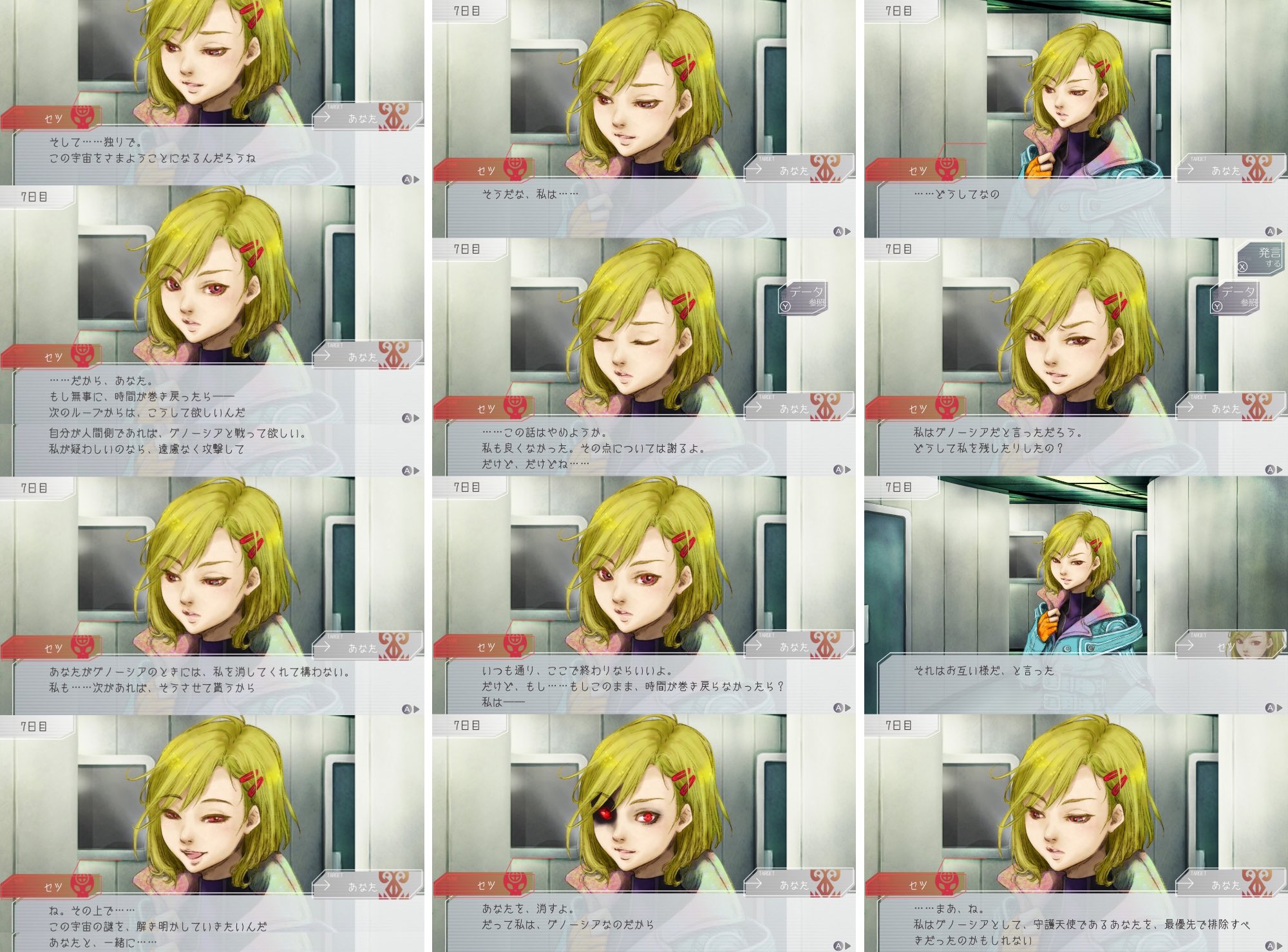 びっくりしたのはセツがプレイヤーは⚪︎ループ目だけど私は⚪︎回目なんだっていうイベントで同じループ回数だと偶然だすごい!みたいなセリフに変わるやつ