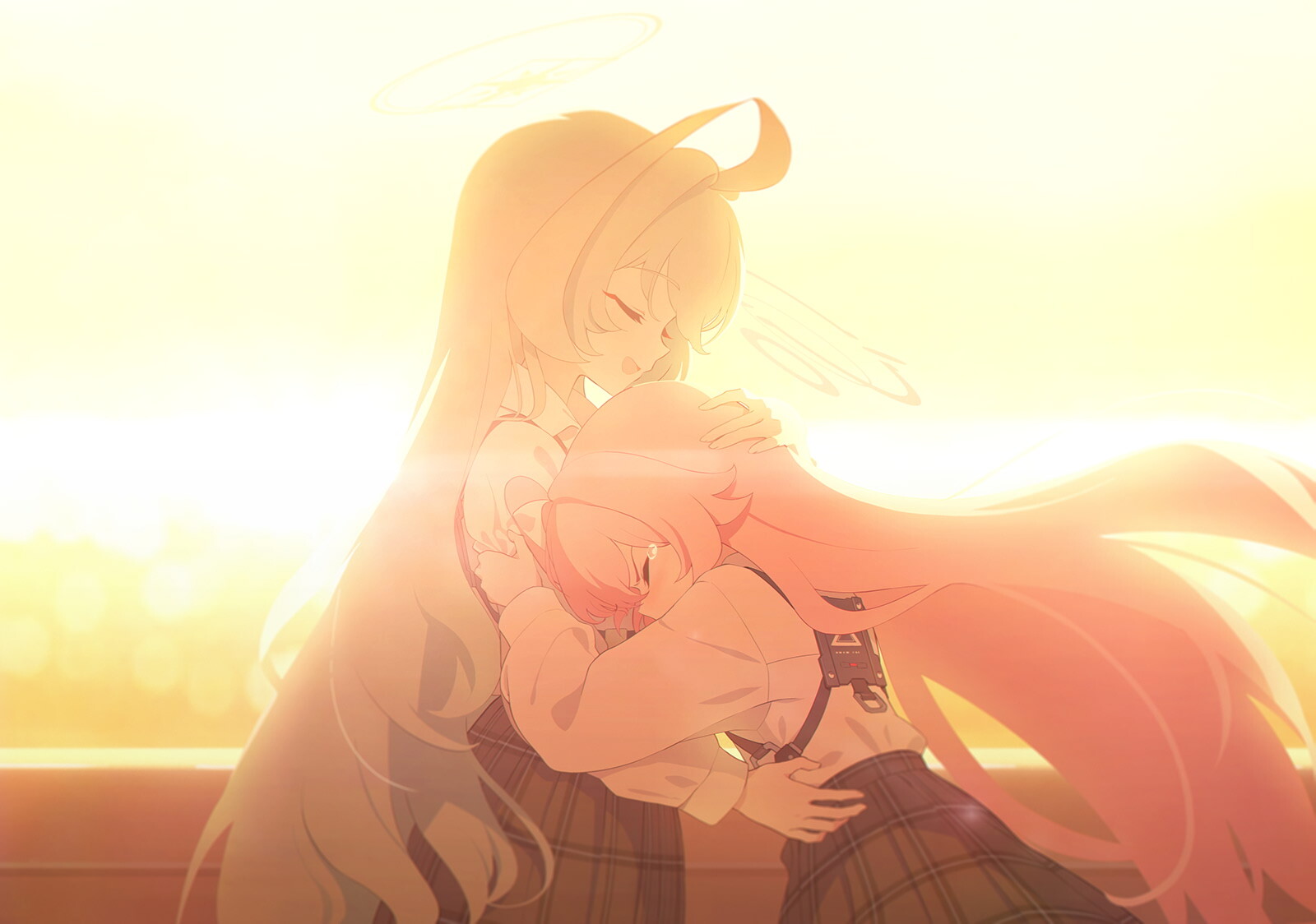 ユメの体にしがみ付き、その胸に顔を埋めながら泣き崩れるホシノ。