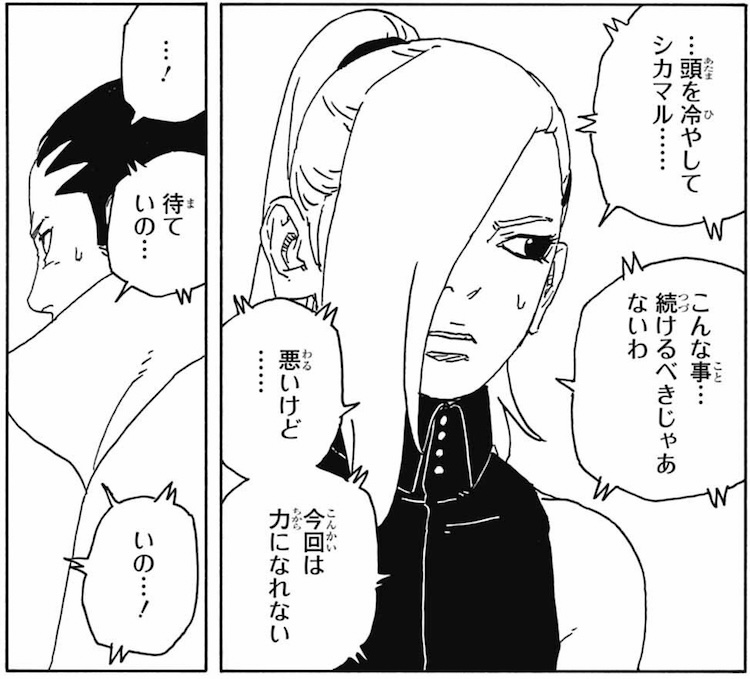 ここでいのがシカマルを手伝ってボルトを逃したのが後でバレたら普通に逮捕案件だからな