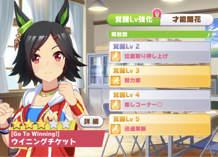 前の中距離チャンミで決勝まで連れてったけど、中盤スキルが充実してるからアナボガチャしやすかった。でもやっぱり固有でないんだよね……固有に頼らずステで勝つタイプ