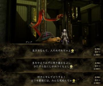 あと人間の仲間たち(太宰とかユヅルとかタオとか)が一時的に仲間なってるときに裏庭に入るとたたかうときの心境やら考え方やら現状について聞けるぞ!