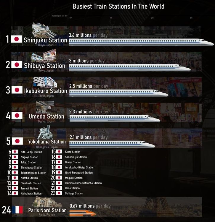 路線数が多いから改札で数えると日本になるのかな