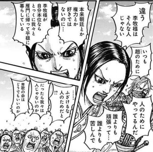 あなたの書き込みを見た時「本当に政と李牧を対比させたかったのなら李牧麾下だけで秦軍に立ち向かわせるべきだったんじゃないっすか?忌憚のない意見ってやつっス」という気持ちが心の奥底で膿のように滲んできた