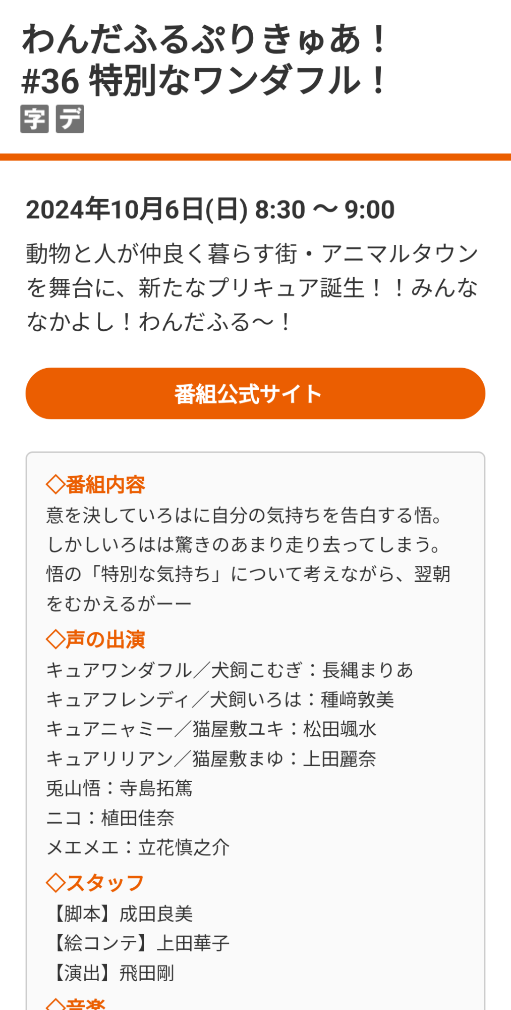 週間番組表 | 朝日放送テレビwww.asahi.co.jpわんだふるぷりきゅあ! #36 特別なワンダフル!