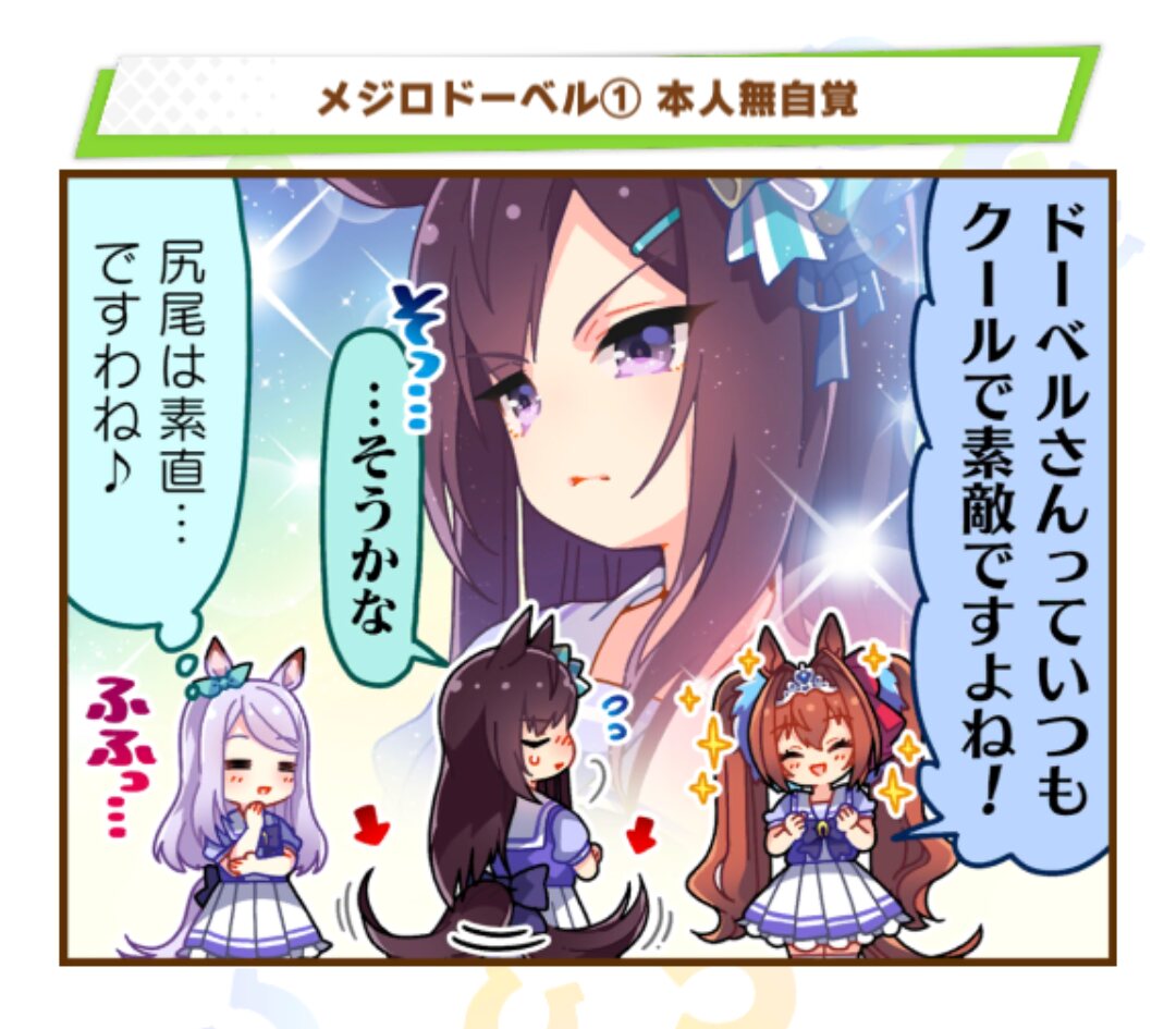 ドーベルシナリオだとアルダンやパーマー、ライアン、マックイーンが先に結果出した上で本人高1だから、末っ子自称はちとキツイなと思った。というか4人の勝鞍や時系列どうなってるんだろ? パーマー、ライアン、マックイーンで宝塚記念それぞれ1回は勝ってるから、勝ち鞍消えてなきゃ3年は経過してるよね?