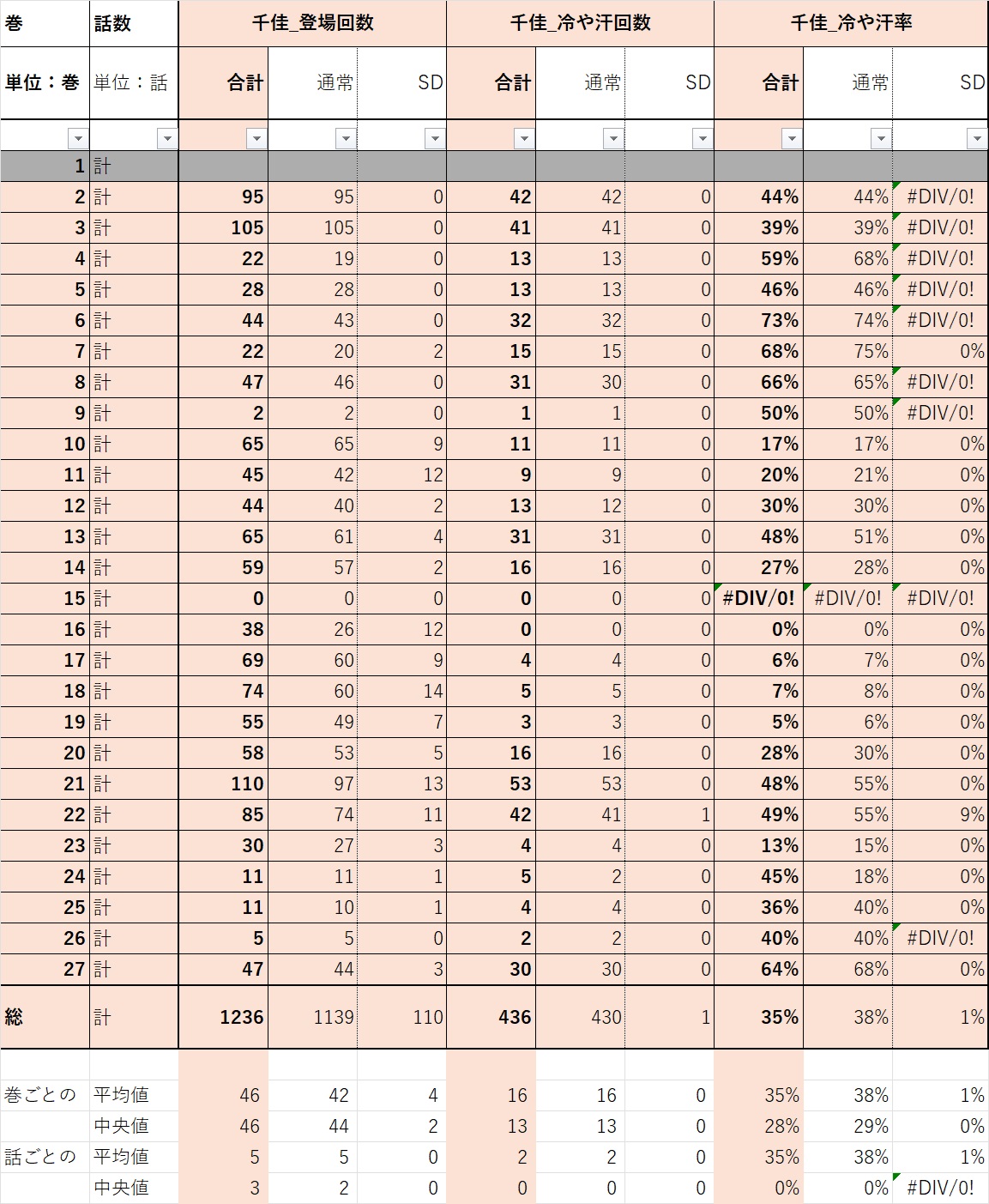 1.集計範囲は「単行本収録」の「本編」とする。本誌掲載時と絵が変わっていた場合は単行本内容を優先する。また、各話の表紙や単行本のおまけページはカウントから除外する。