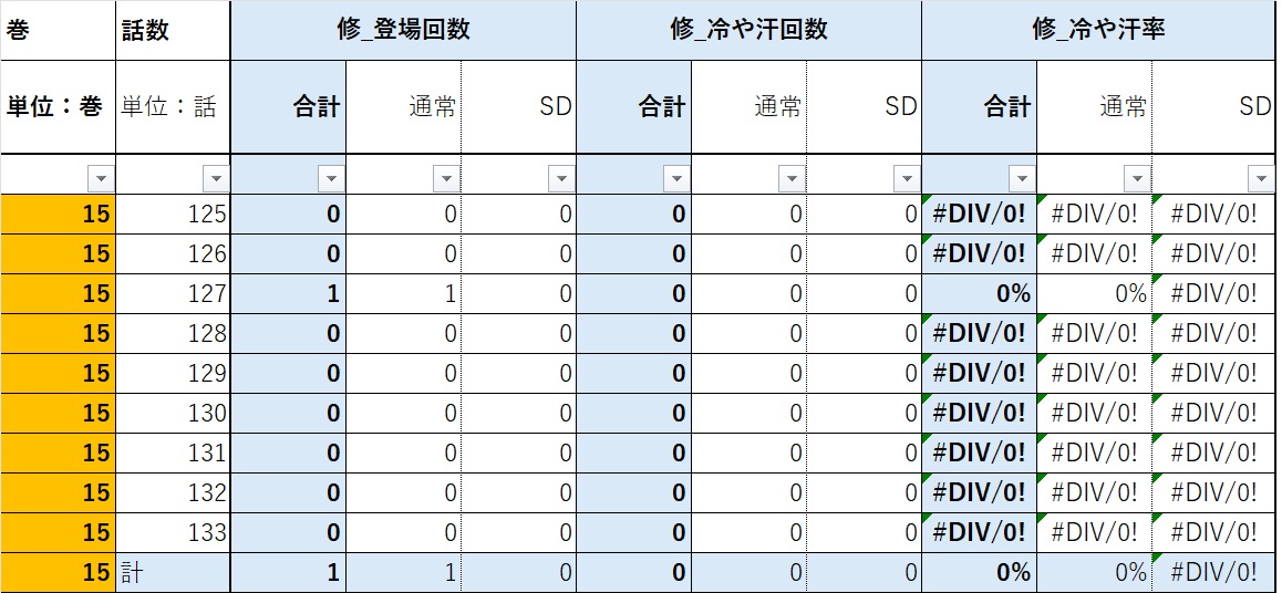 閉鎖環境以降の修は隊長の役割から解放されて諏訪さんの下でのびのびできるから汗率低いって思ってたけど