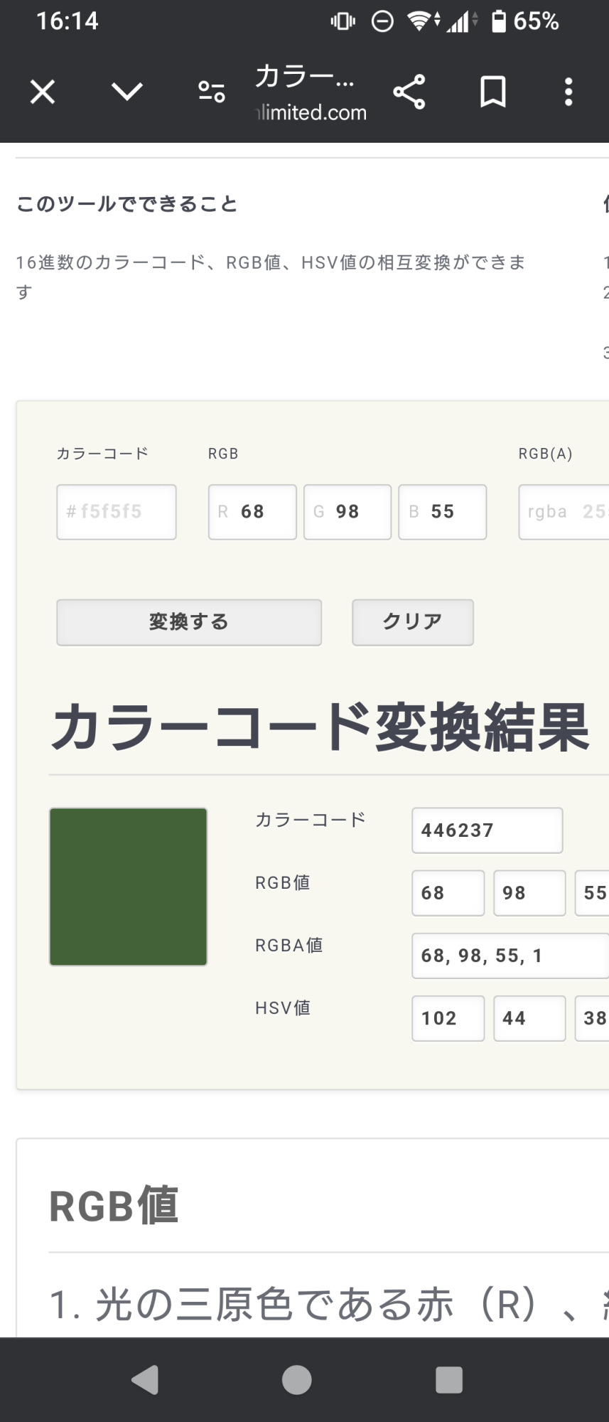ハルのパンツの色 RGB dice3d255=68 98 55 (221)
