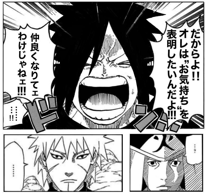 マダラがあまりにもお気持ち表明ができなさすぎて表明後のルート(しかも地獄)に移行してるのワロてる