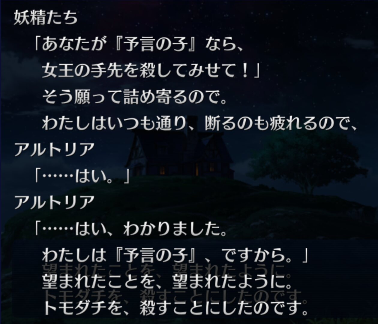 アルトリアの表情がヒントになるとかこれまでの選択肢で最後のオベロンとの会話が変わるとかも面白かったし、ちゃんと考察しながら読んだのはじめてだけどそれも面白かった、伏線とかヒントの出し方とかタイミングとか含め散りばめ方が上手いなと思った