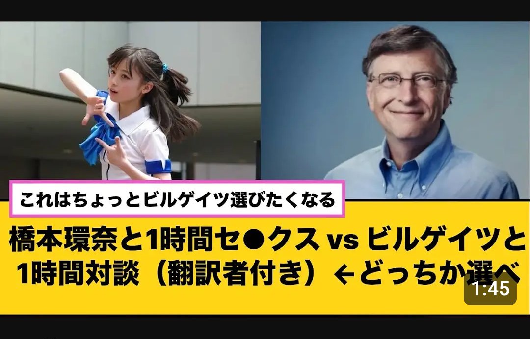 ビルゲイツと橋本環奈のボボパン動画をネットで売るのん - 64二次元好きの匿名さん24/10/08(火) 17:51:11