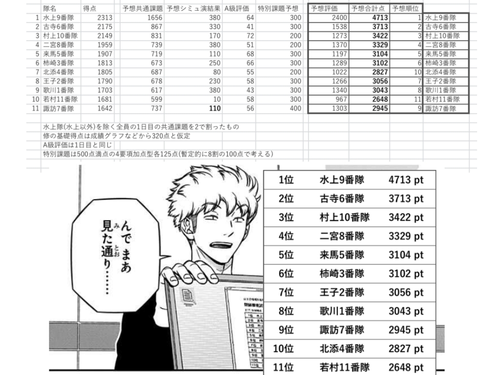 とは言え若村隊と諏訪隊の差が200点程だし、次の日の戦闘シミュで2勝したら埋められる差でしかない