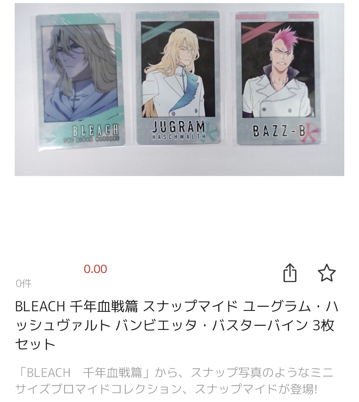 似たような案件で前「BLEACHウエハースカード」って商品名で明らかに東京リベンジャーズのカードしか写ってない写真あげてるの見たことある - 132二次元好きの匿名さん24/10/21(月) 20:34:40