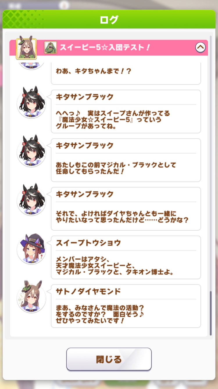 交換チケットはアルダンとアヤベさんが欲しくて範囲内にめぼしい子がいないのでスルーですね(第1集落チャット)