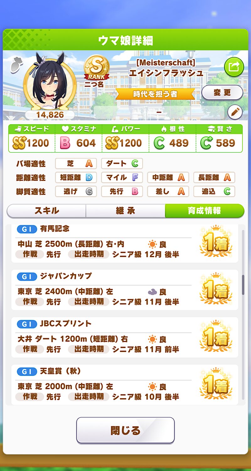 TS実装前にダート短距離以外は取ってたから頑張ろうかな…