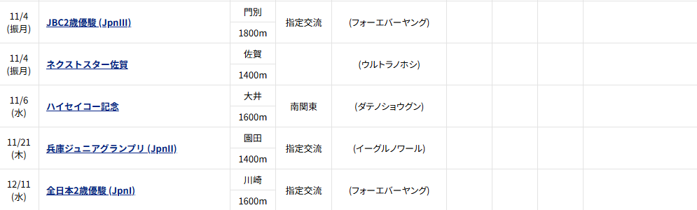 JBC2歳優駿 17時55分発走