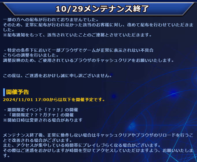 前夜祭ガチャの期間も修正されてるのん