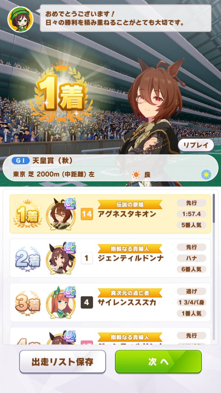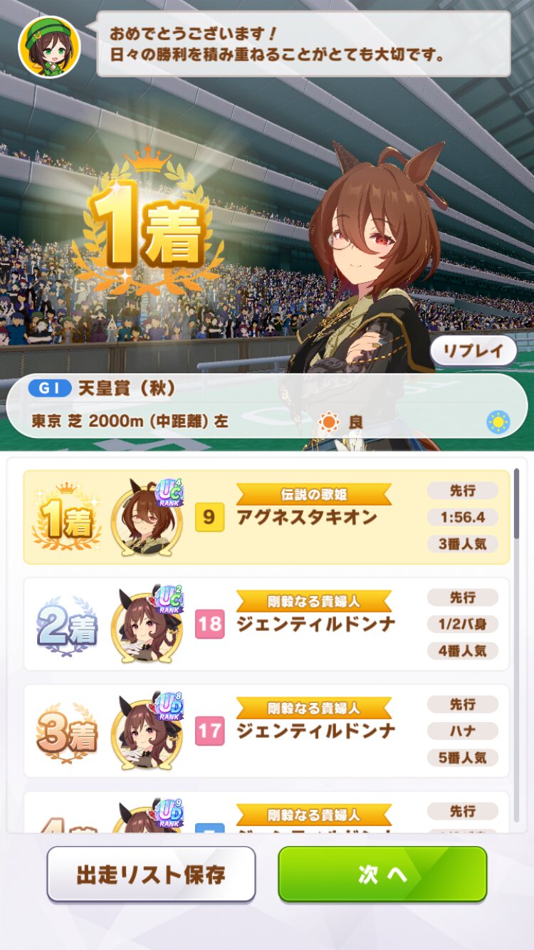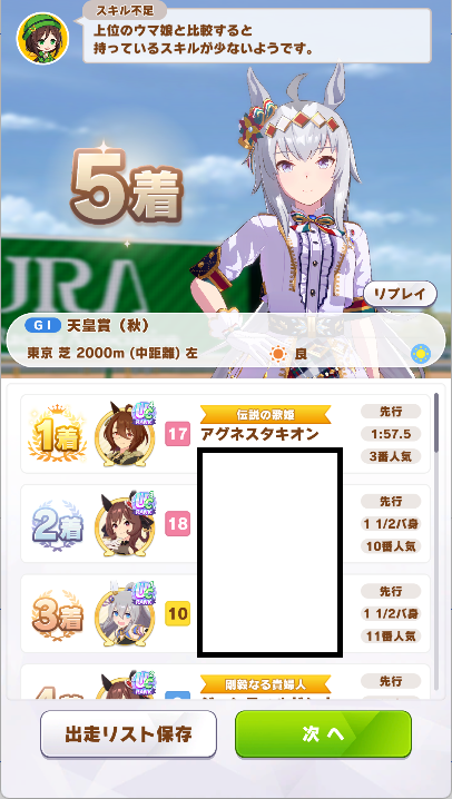 やっぱタキオンちゅよい…序中盤からスキルガンガン出せないと前行けず勝負にならんな