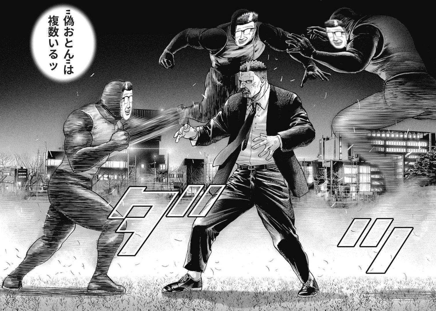 体格・顔つきが瓜二つの設定とそれを設定通り描ける猿先生の画力のおかげで顔面取り替えても違和感0なの笑ってしまう