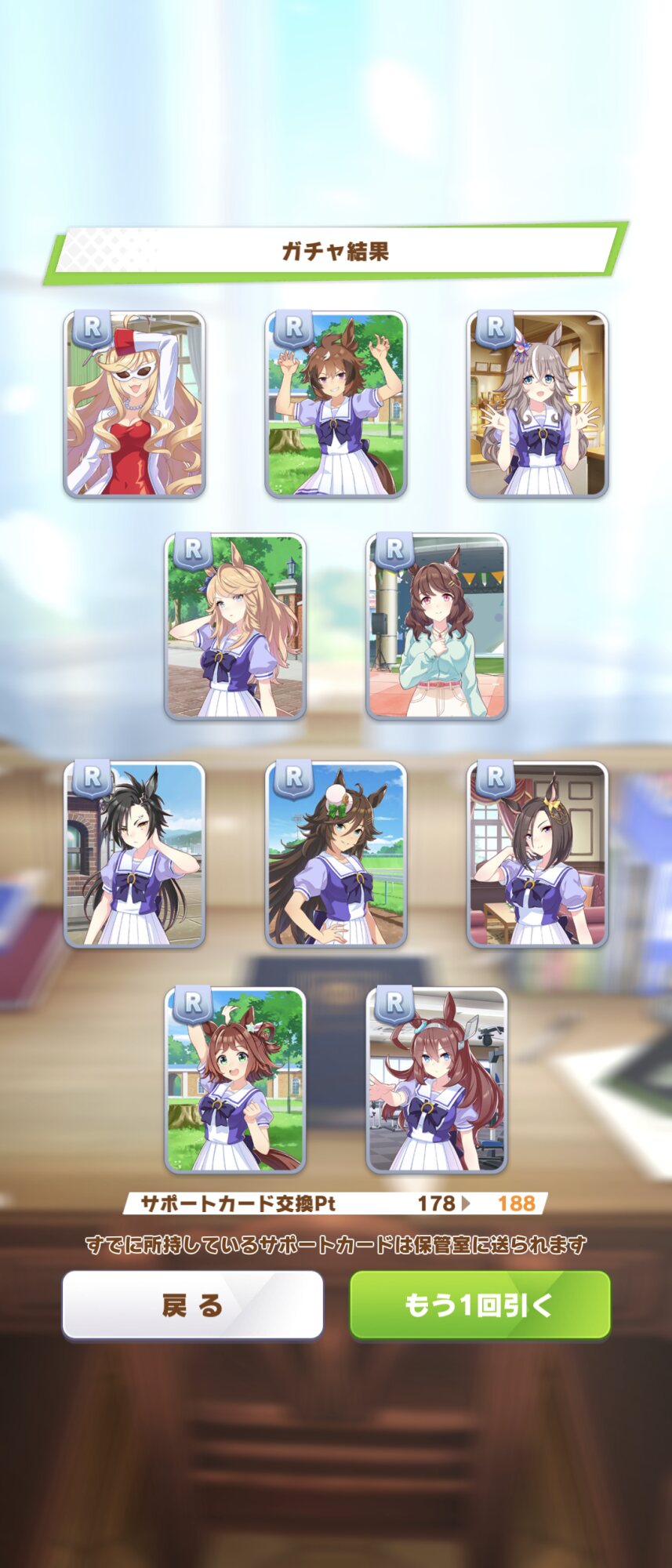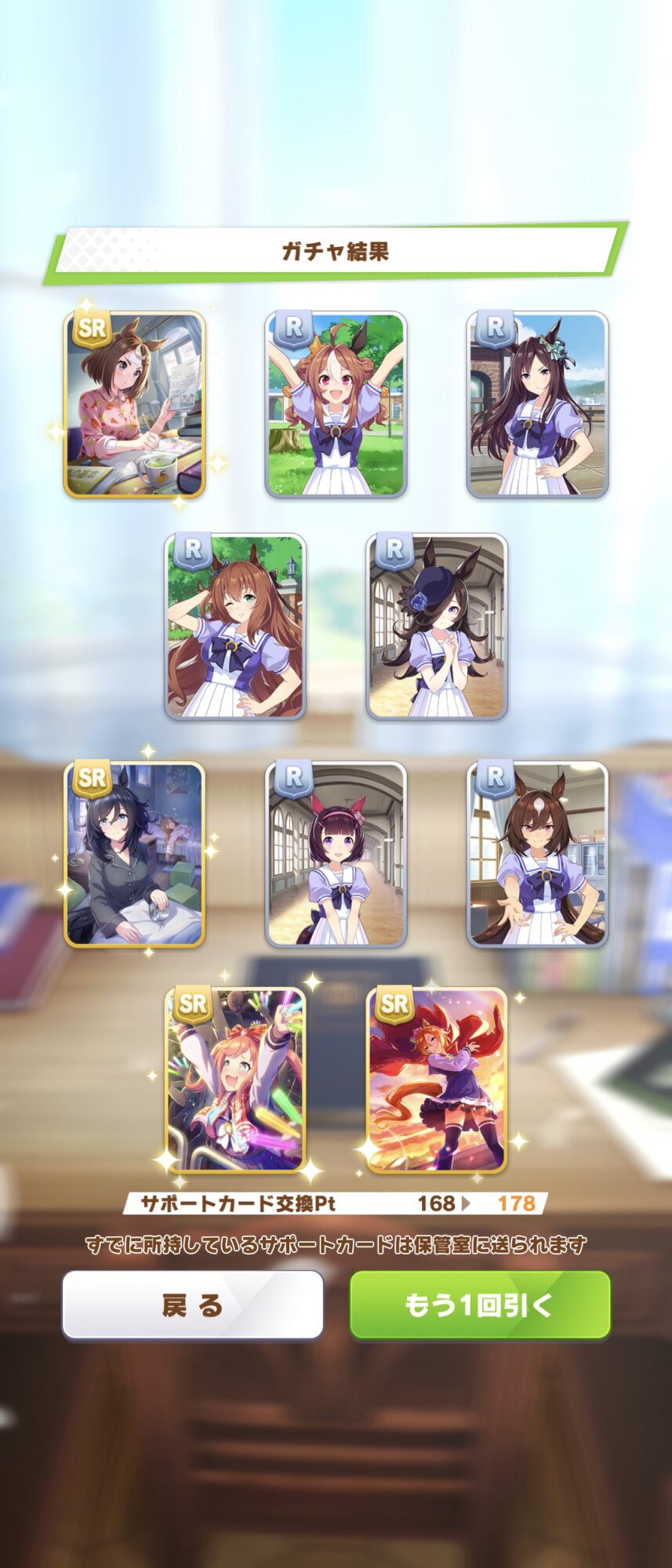 一度も育成で輝いた事が無いSSRでせっかくの運というか確率が潰れるよりマシなんだ。だから育成で使えるサポカを引けた事は幸運なんだ。