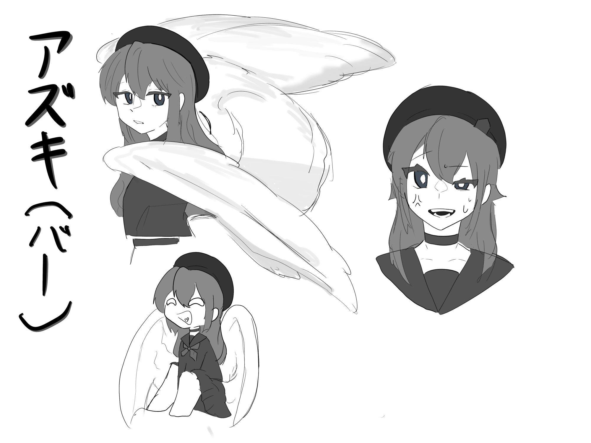 羽根はハスミの対比として白か、アズキにちなんで赤茶くらいを想像してる