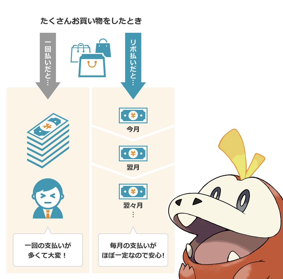 はぇ〜十万もする商品がリボ払いなら毎月1万円で手に入っちゃうのか〜