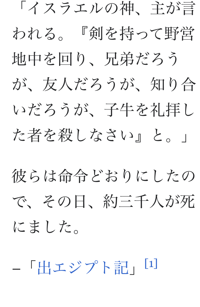 四文字「ワシとモーセがちょっと山に引きこもってただけで偶像崇拝し始める民…糞