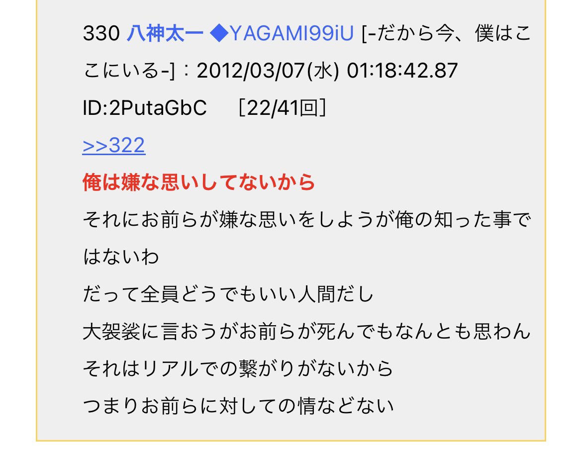 まぁ現実で居場所がなかろうと掲示板でやったことが蛆虫だったことは変わらへんからな