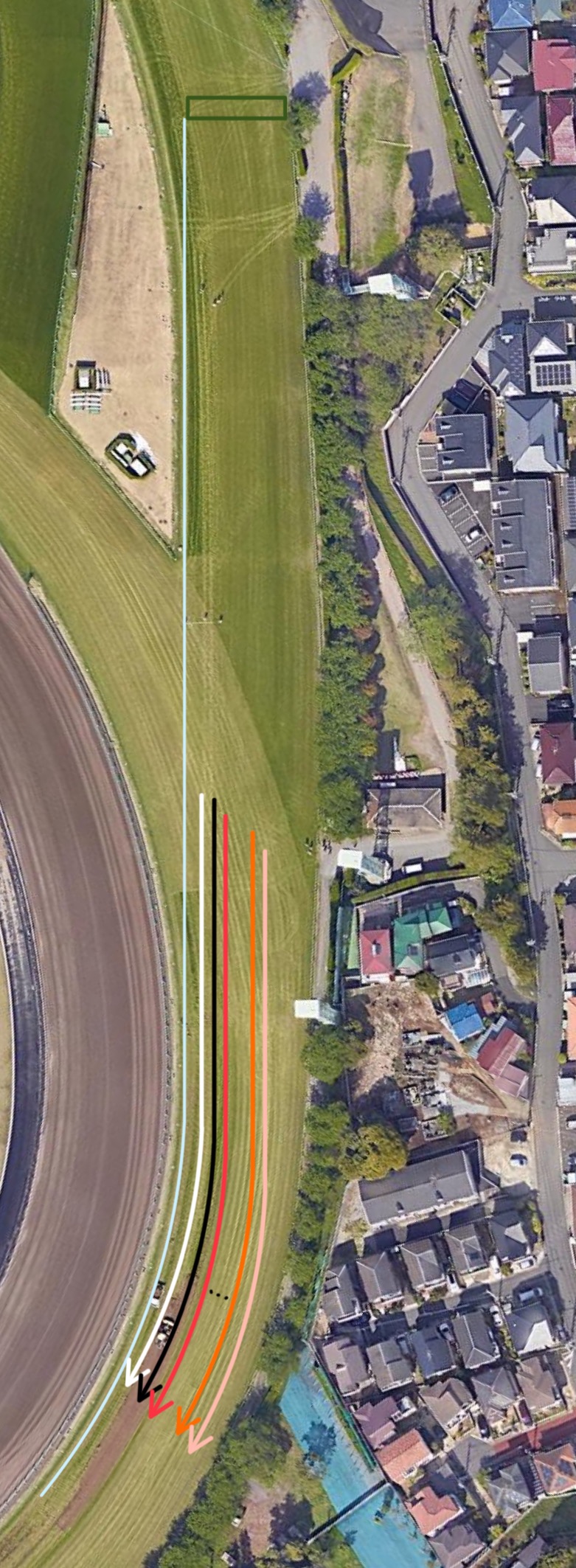 馬や人間のサイズで走るカーブを航空写真で捉えるのはいやーきついっす